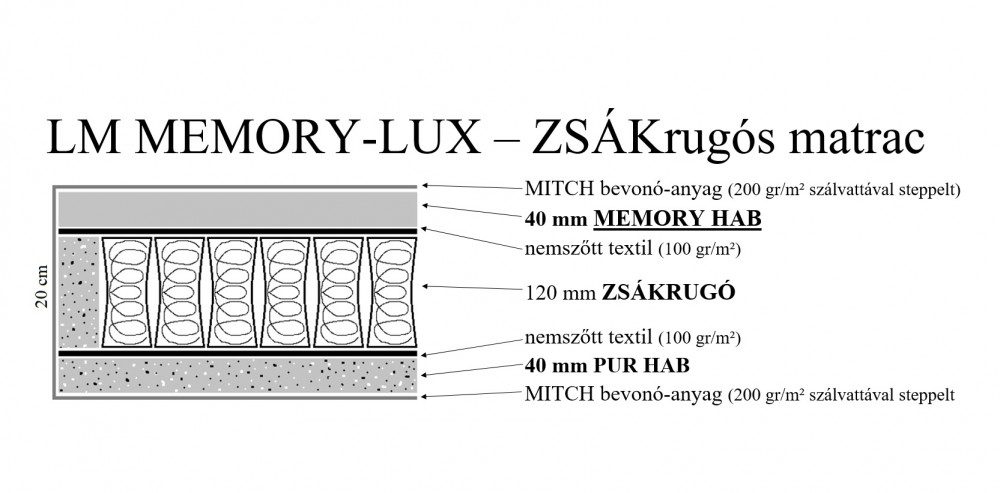 Az LM-MEMORY LUX matrac a felhasznált magas minőségű alapanyagoknak köszönhetően hosszú ideig biztosítja a kényelmes alvást.