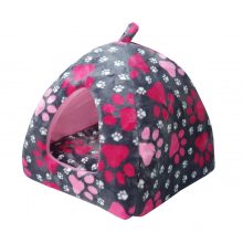 Külső huzat: Fekete alapon nagy-pink, és kis-fehér tappancsos mintájú plüss